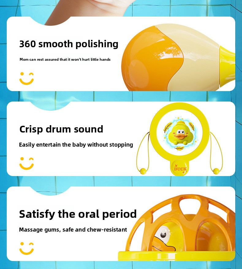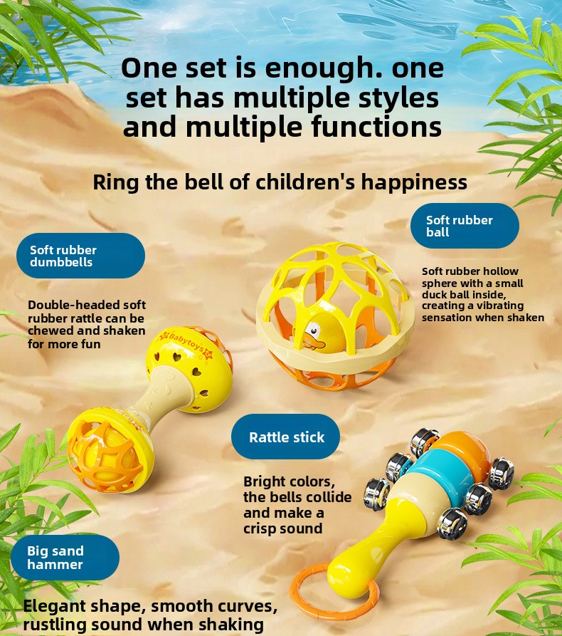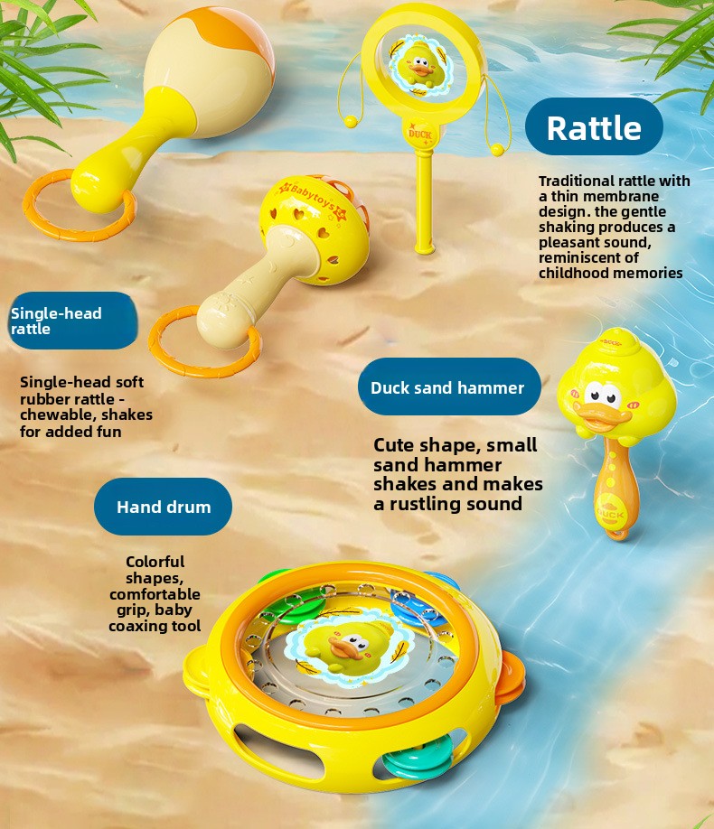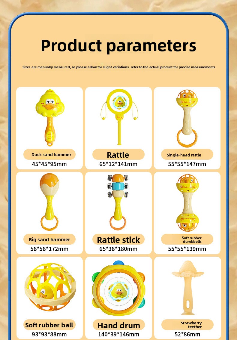 Product types: Rattle, hand-held ball, teether, sand hammer, drum