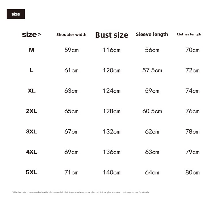 Sizes: M, L, XL, 2XL, 3XL, 4XL, 5XL