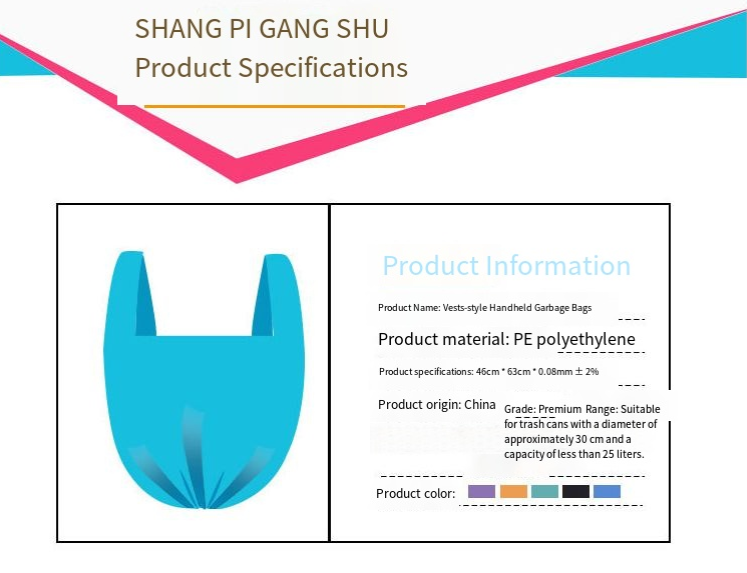 • Vest-style: Purple (30/roll), Orange (30/roll), Green (30/roll), Blue (30/roll), Black (30/roll).