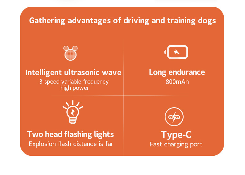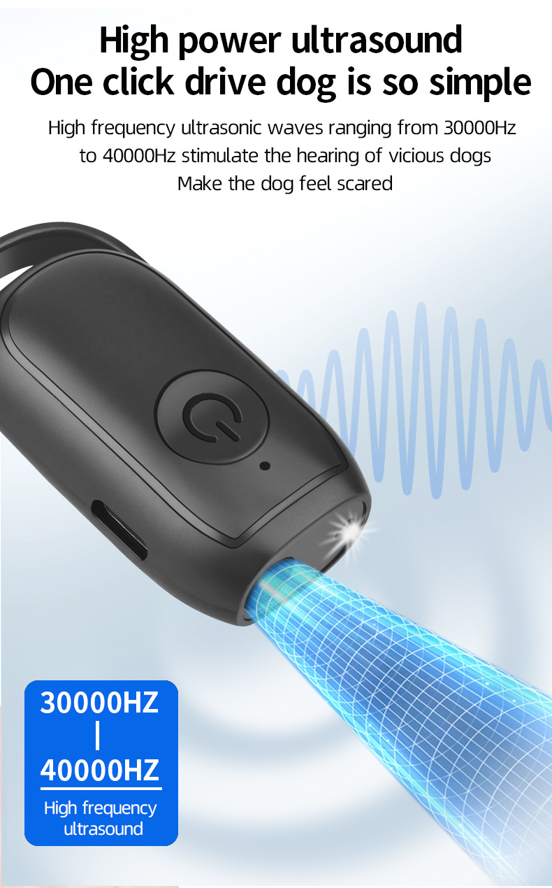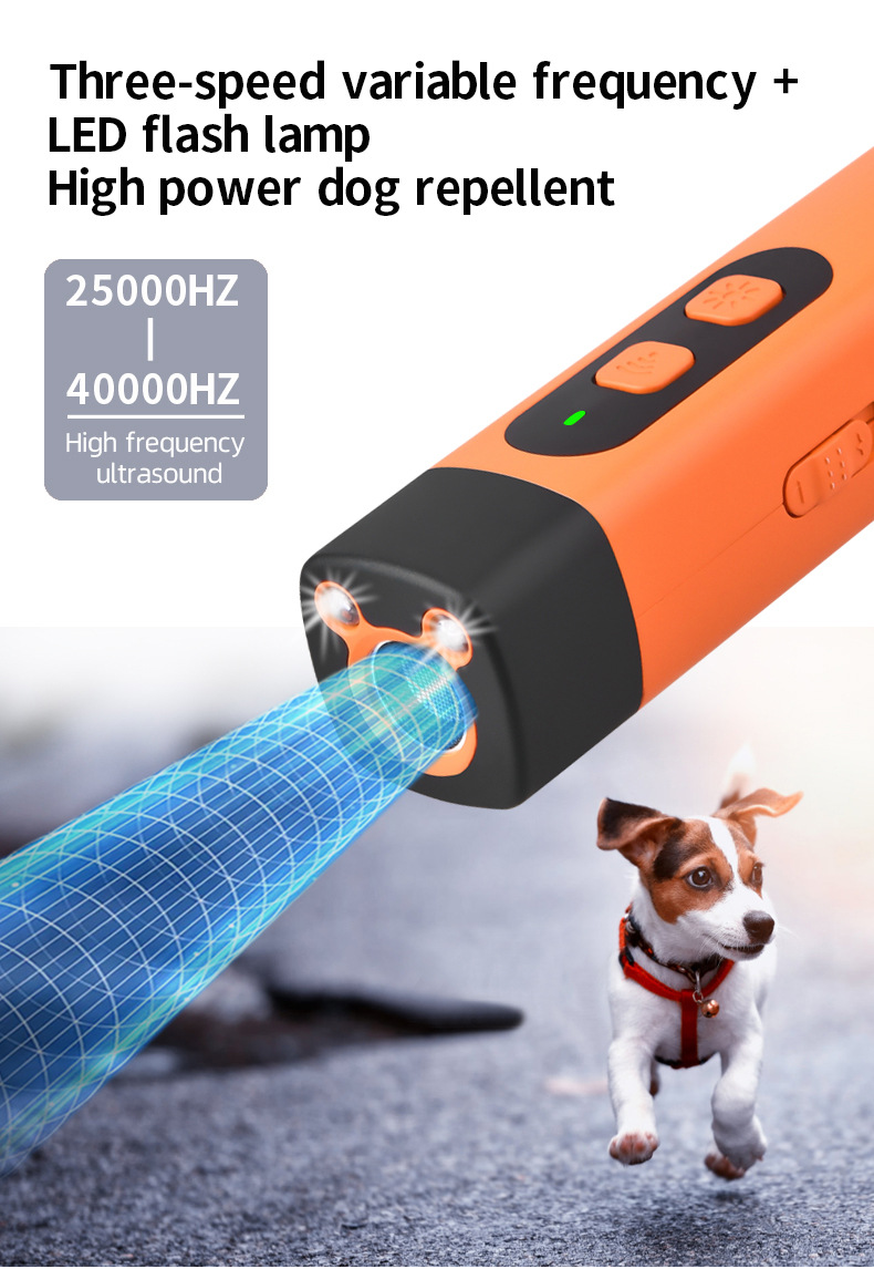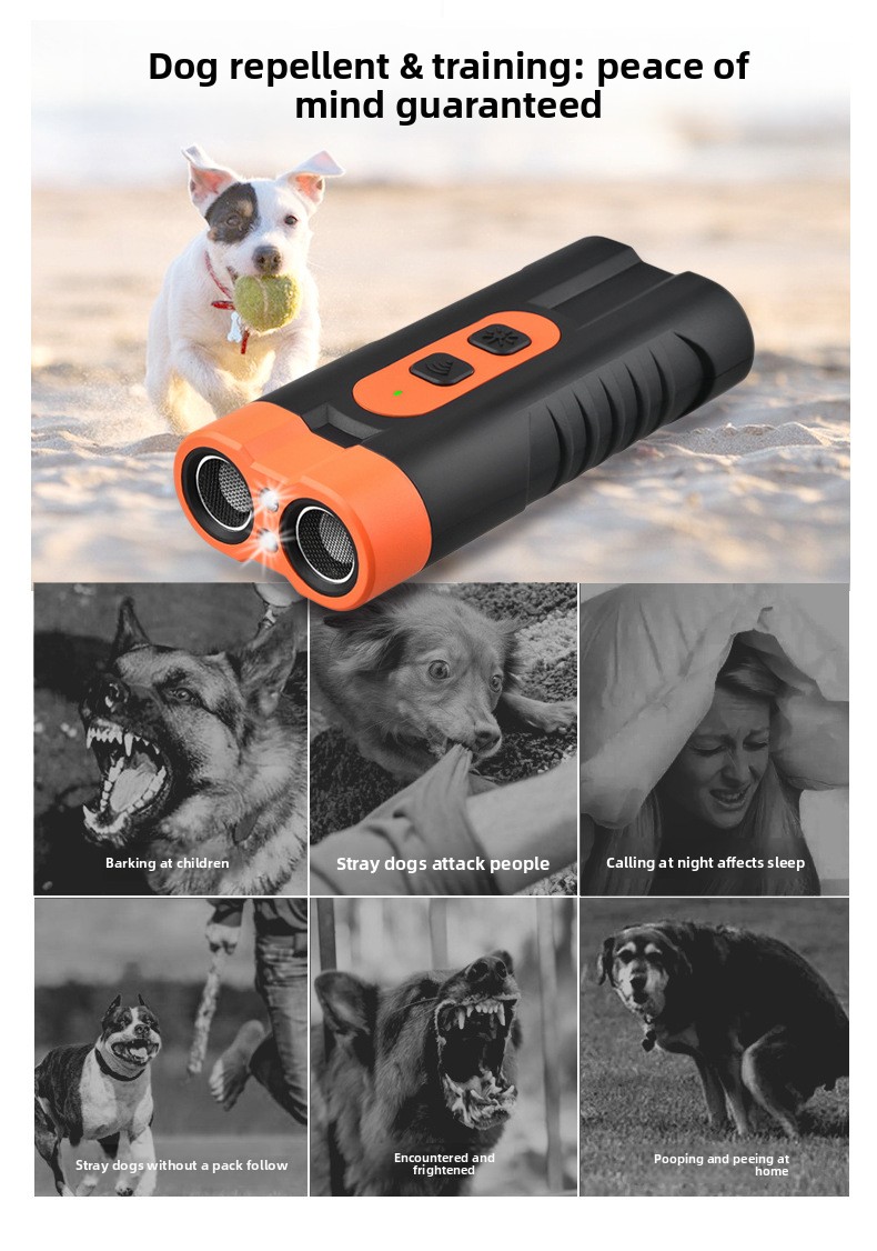 Ultrasonic Technology: Uses high-frequency sound waves to repel dogs without physical harm, effective for training and stopping barking.