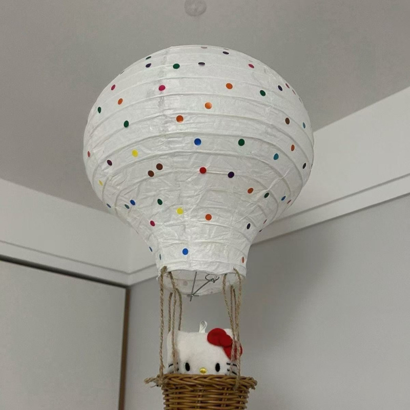 Package Contents: Hot air balloon frame, Kitty doll (included or self-provided variant), dot stickers, LED light string