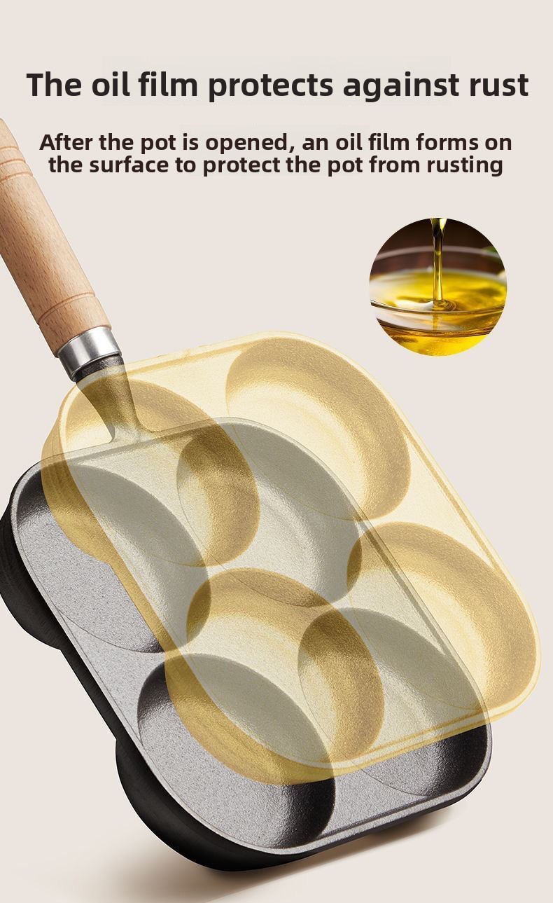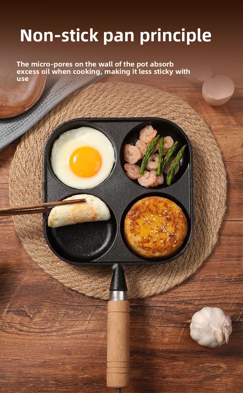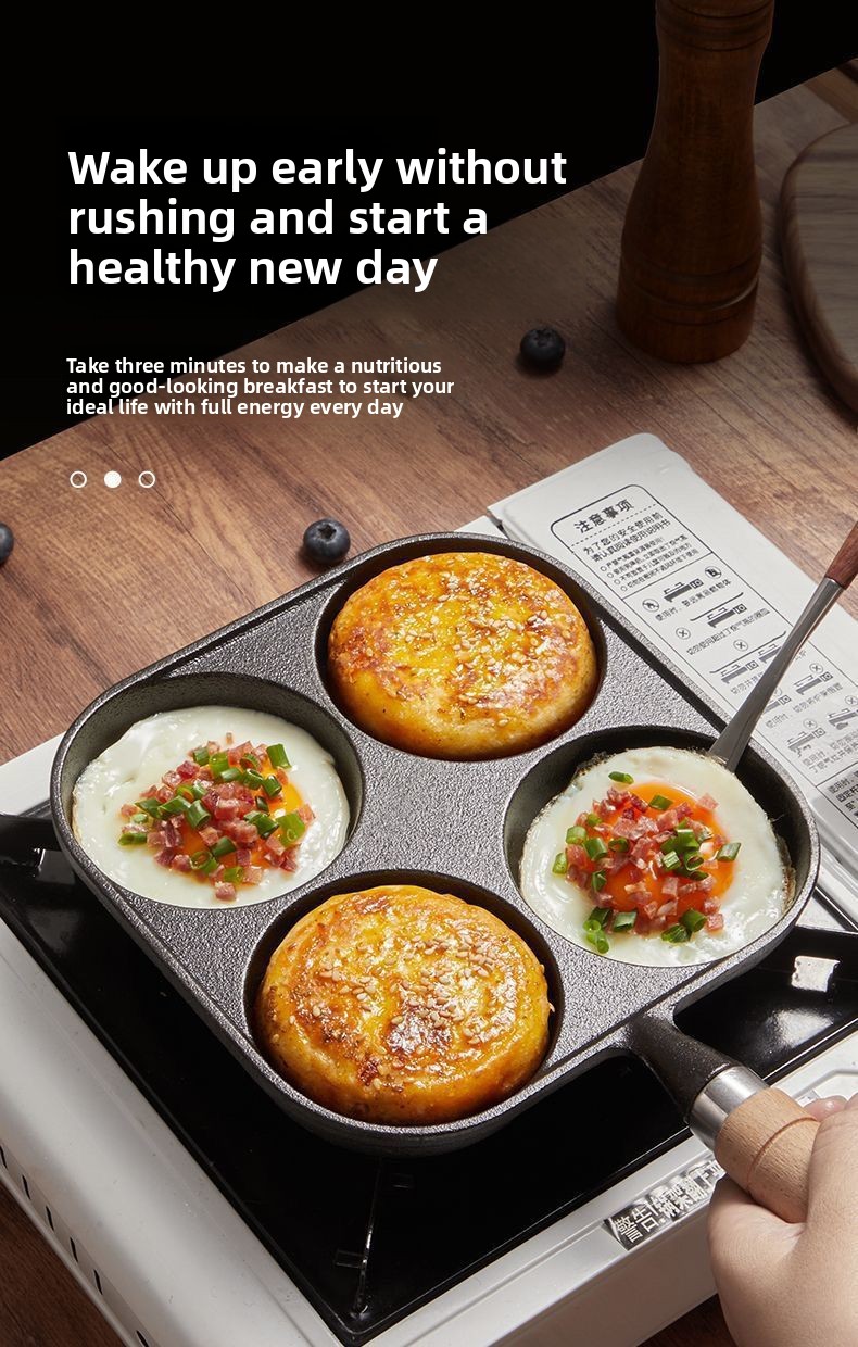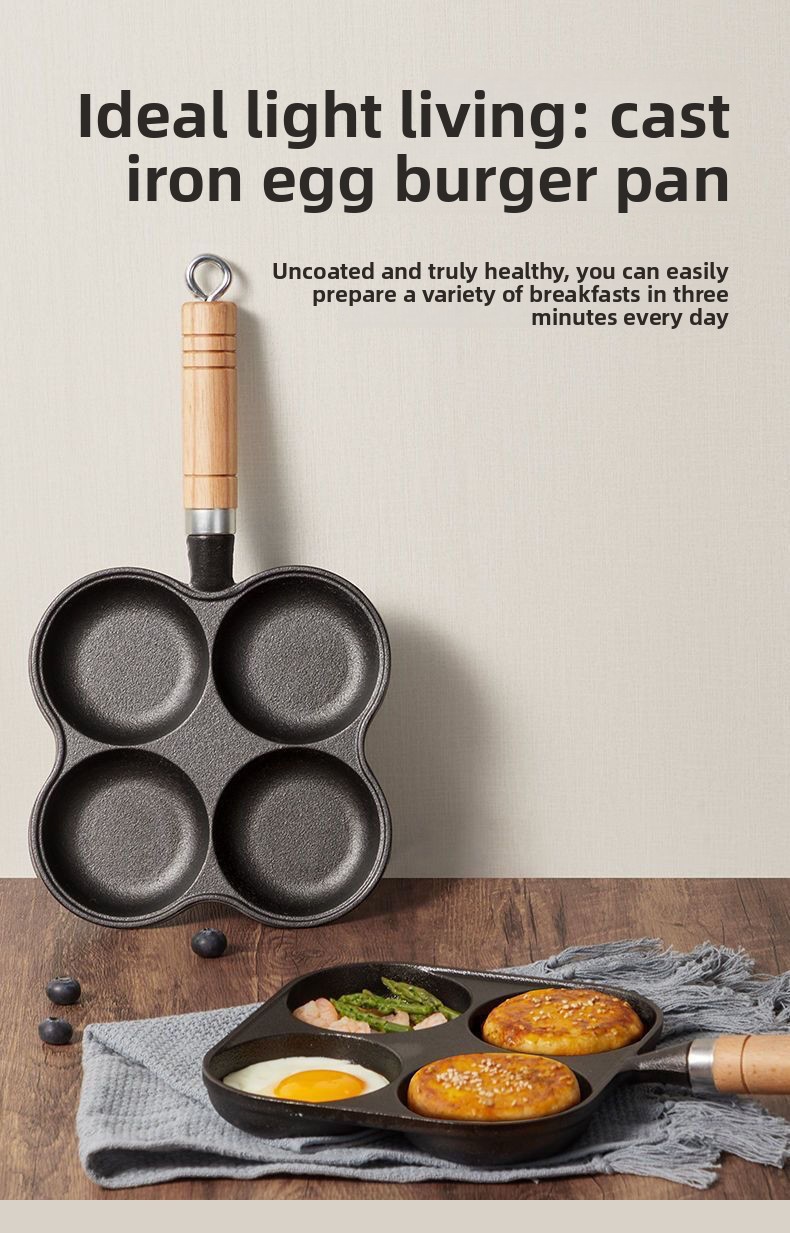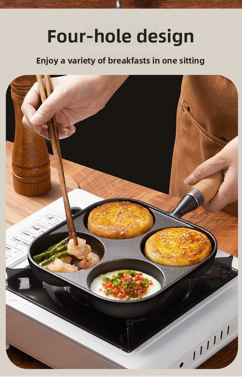Multi-Function Design: 4-hole mold suitable for frying eggs, making egg dumplings, burgers, and pancakes.