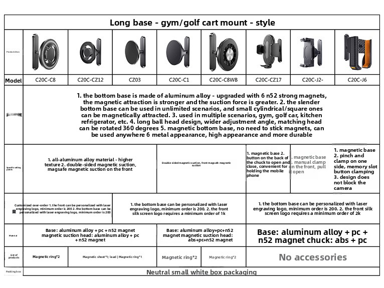 Magnet Specification: 6 N52 circular magnets in base + positioning chuck