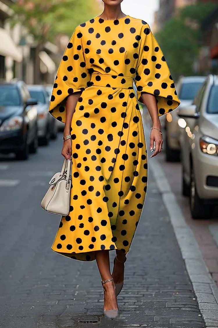 Style: Big display, Long skirt, Round neck, Bat sleeve, Three-quarter sleeves