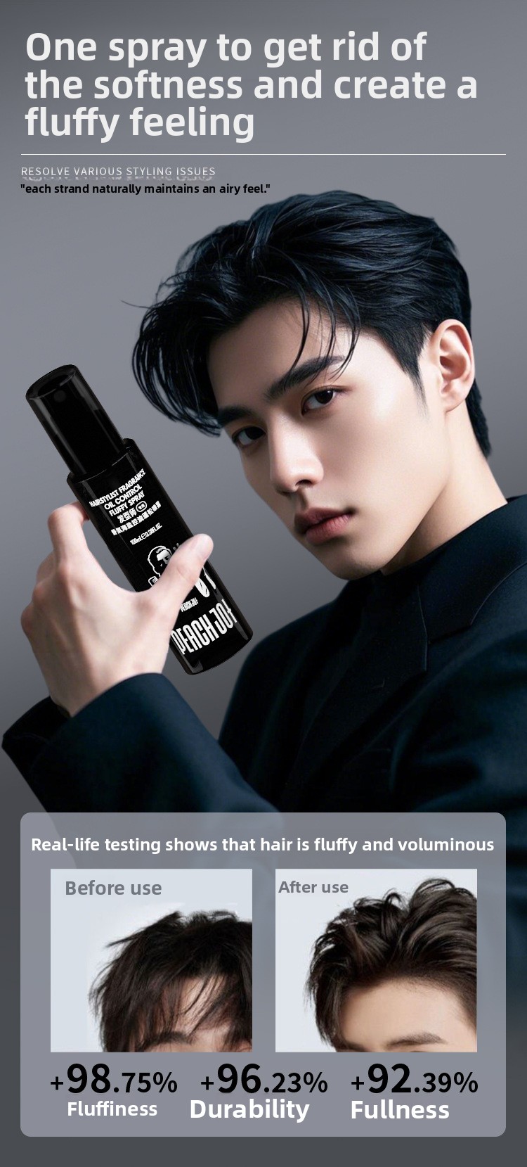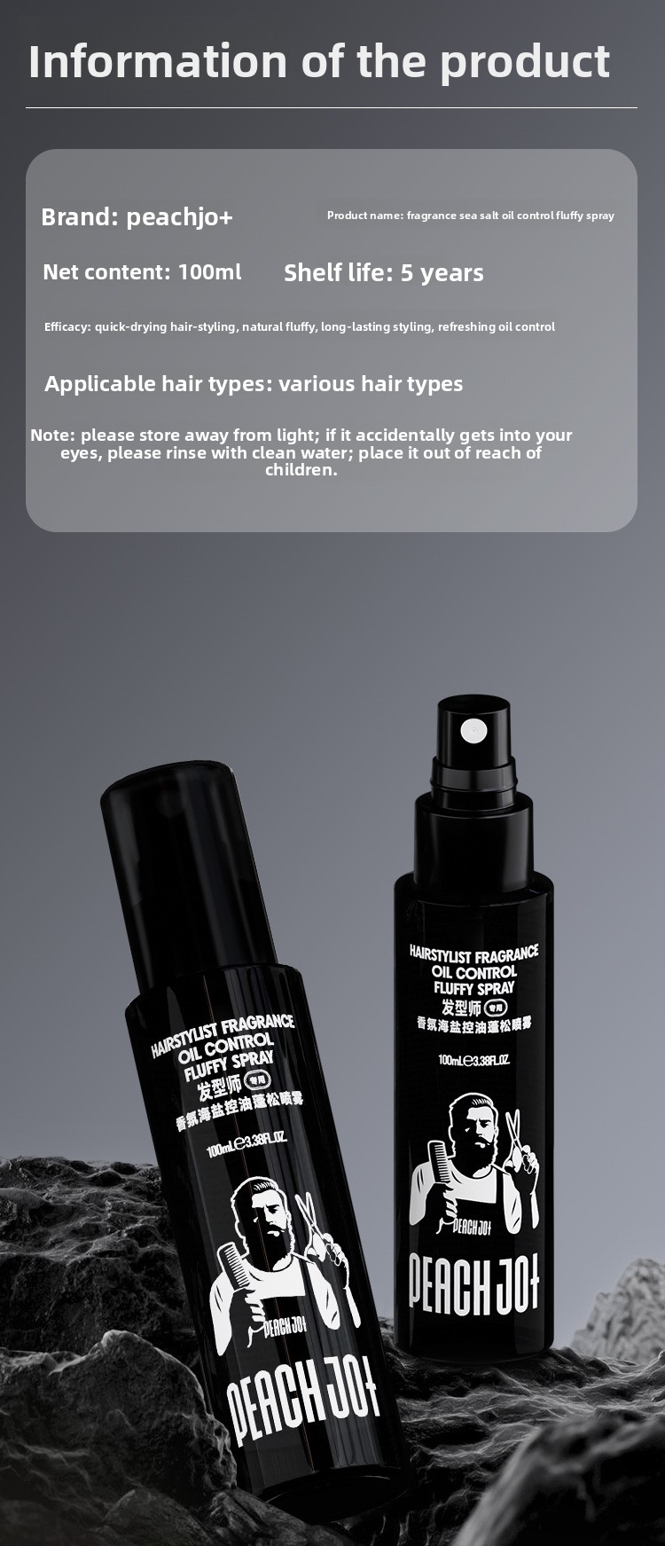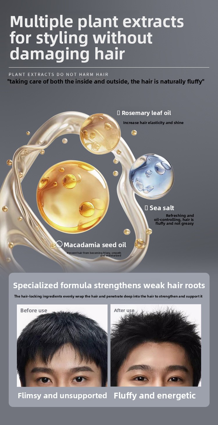 Function: Oil control, volume boosting, styling hold