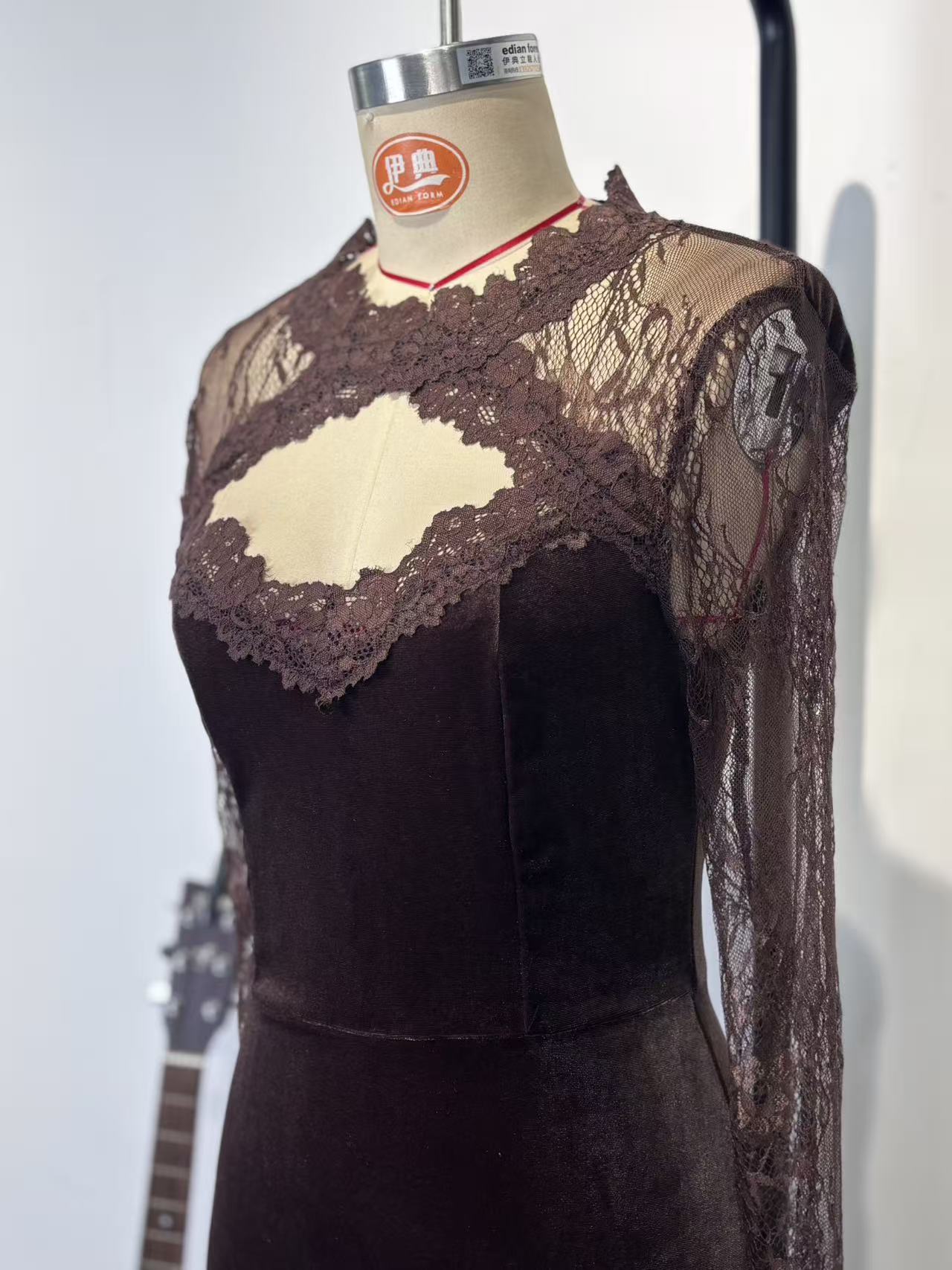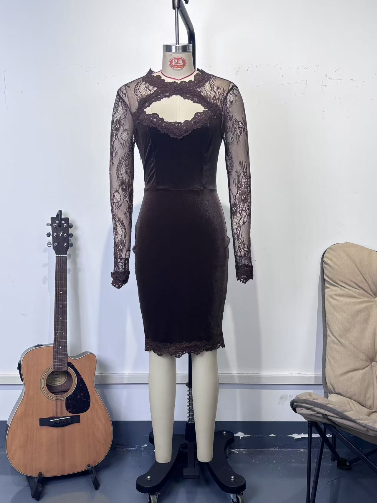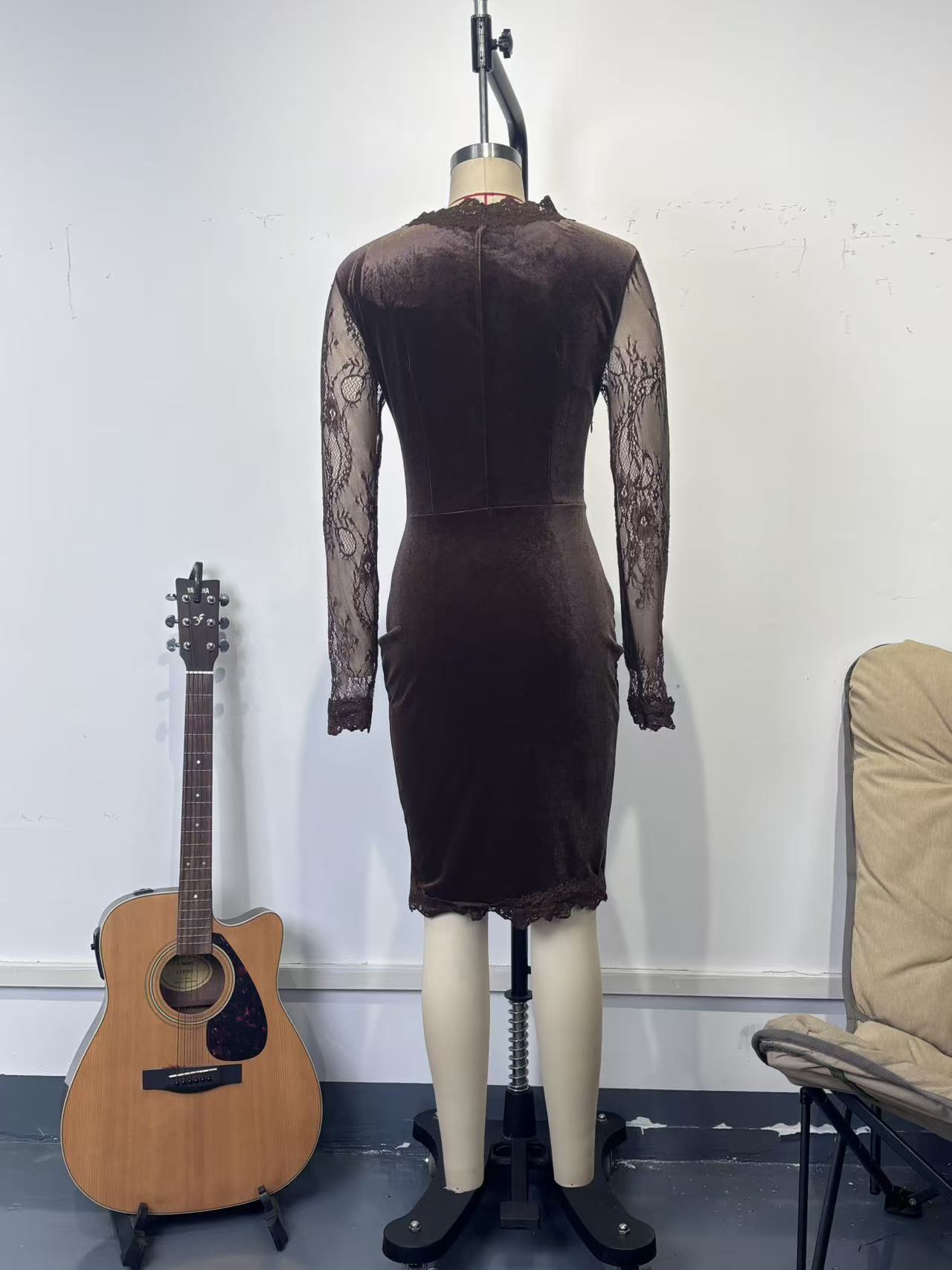 Lace Detailing: Elegant see-through lace sleeves and V-neck collar for a sophisticated look