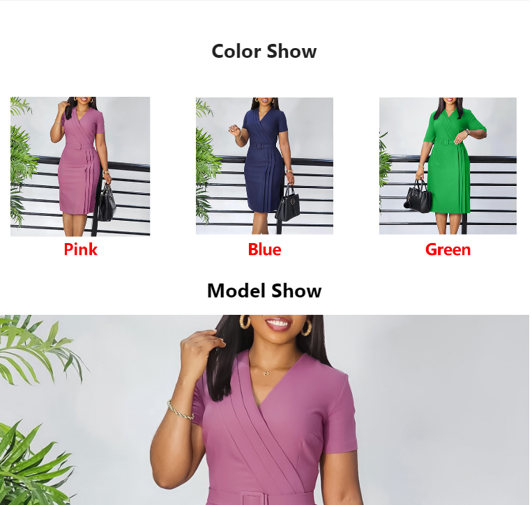 Colors: Dark blue with belt, Lotus pink with belt, Green with belt