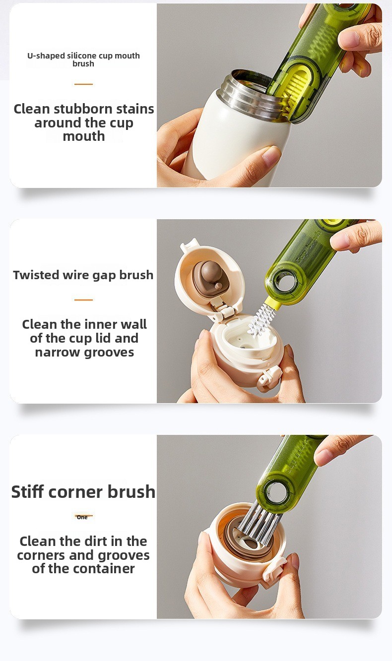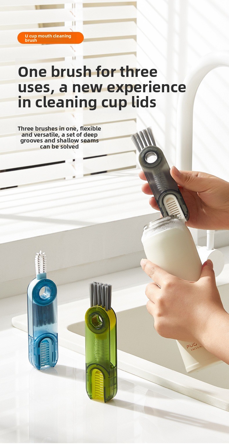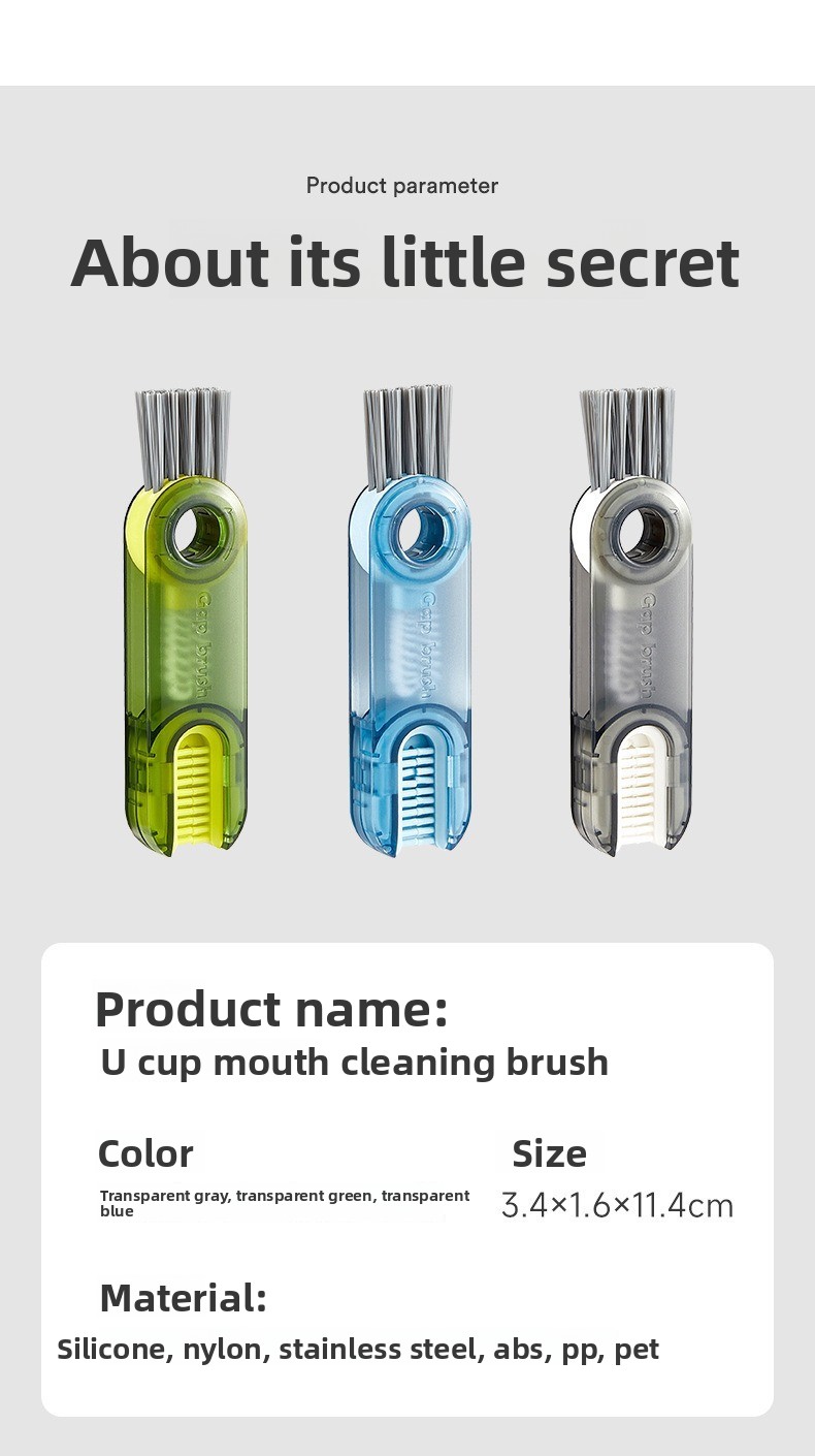 Three-in-one Design - Combines cup, bottle cap, and U-shaped groove cleaning functions in one tool