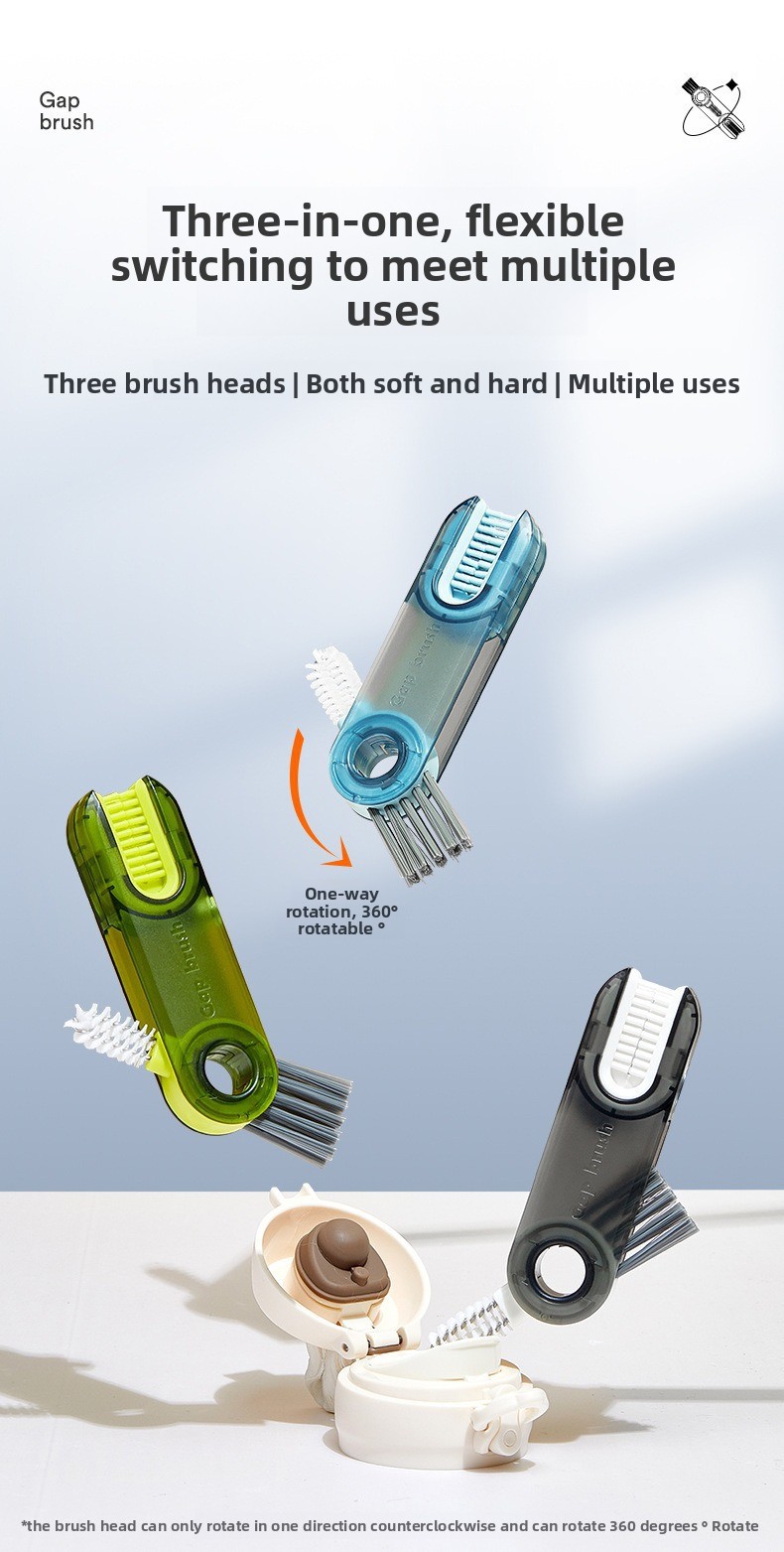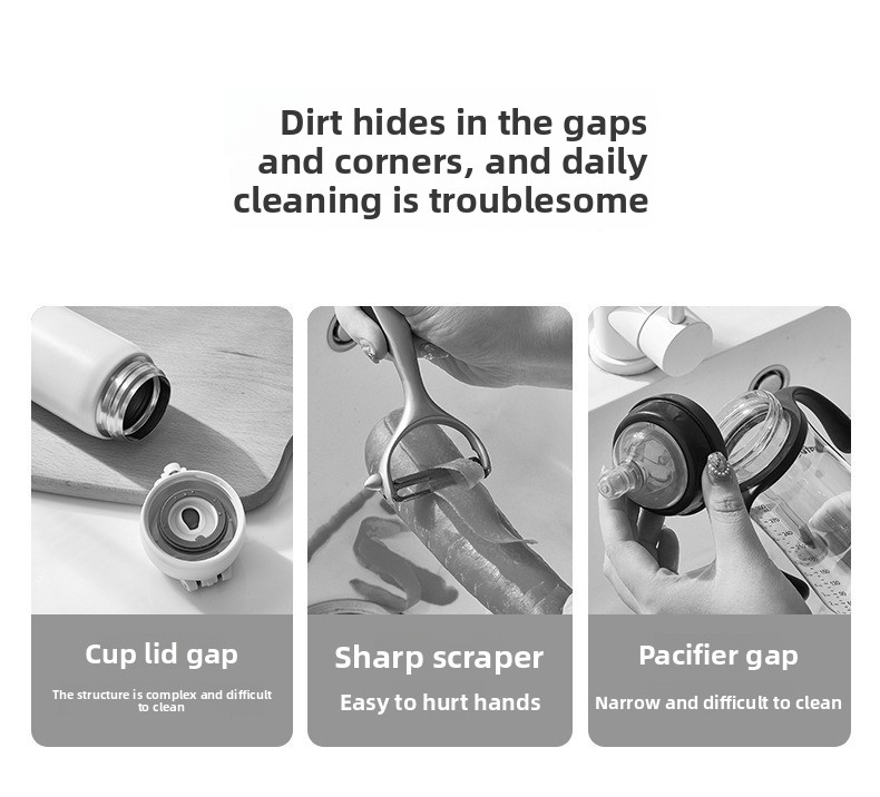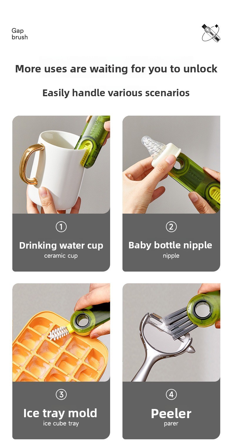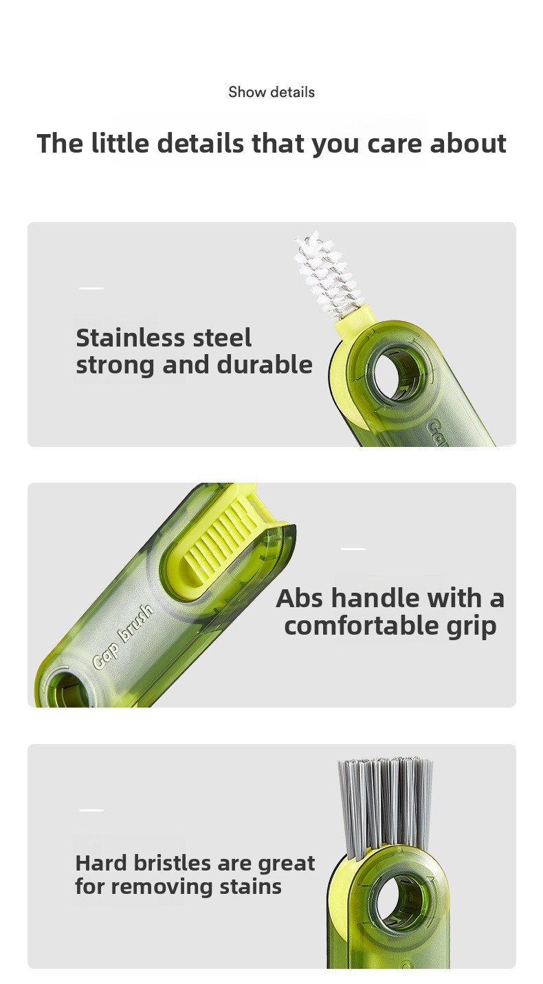 Three-in-one Design - Combines cup, bottle cap, and U-shaped groove cleaning functions in one tool